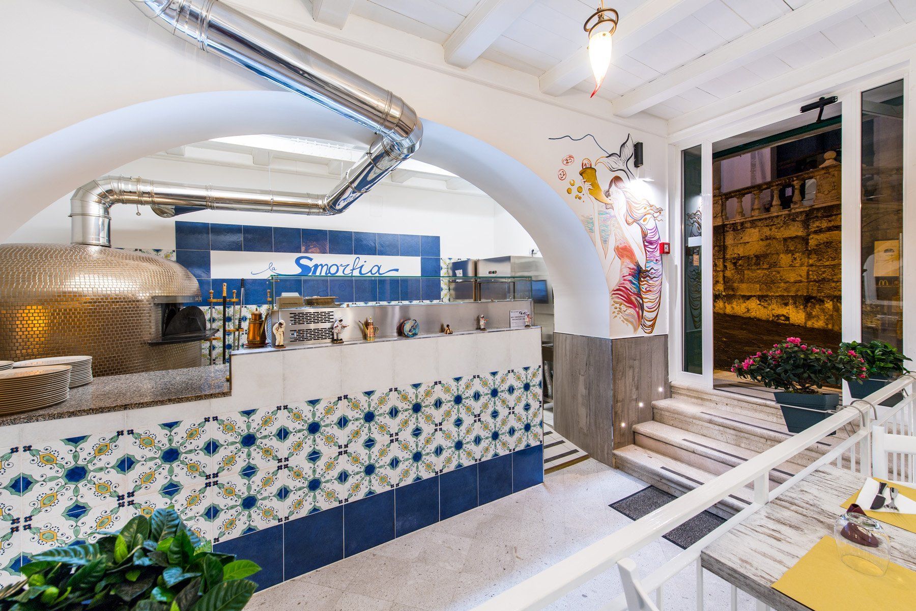 La pizzeria La Smorfia, si trova in una parte del seicentesco Palazzo De Ruggiero, noto oggi come Palazzo Giannattasio